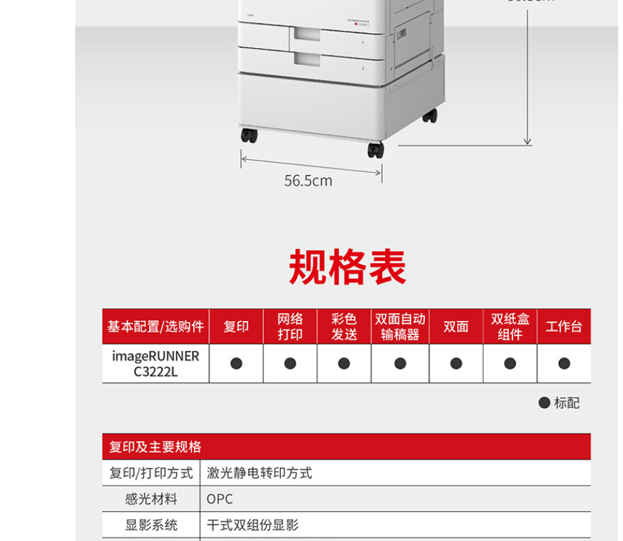 佳能(Canon)复印机iRC3222L A3彩色数码复合打印机含双面自动输稿器含工作台 免费上门安装 3120L升级